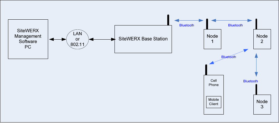 on a networked PC, a SiteWERX Base Station (SBS), and one or more SiteWERX