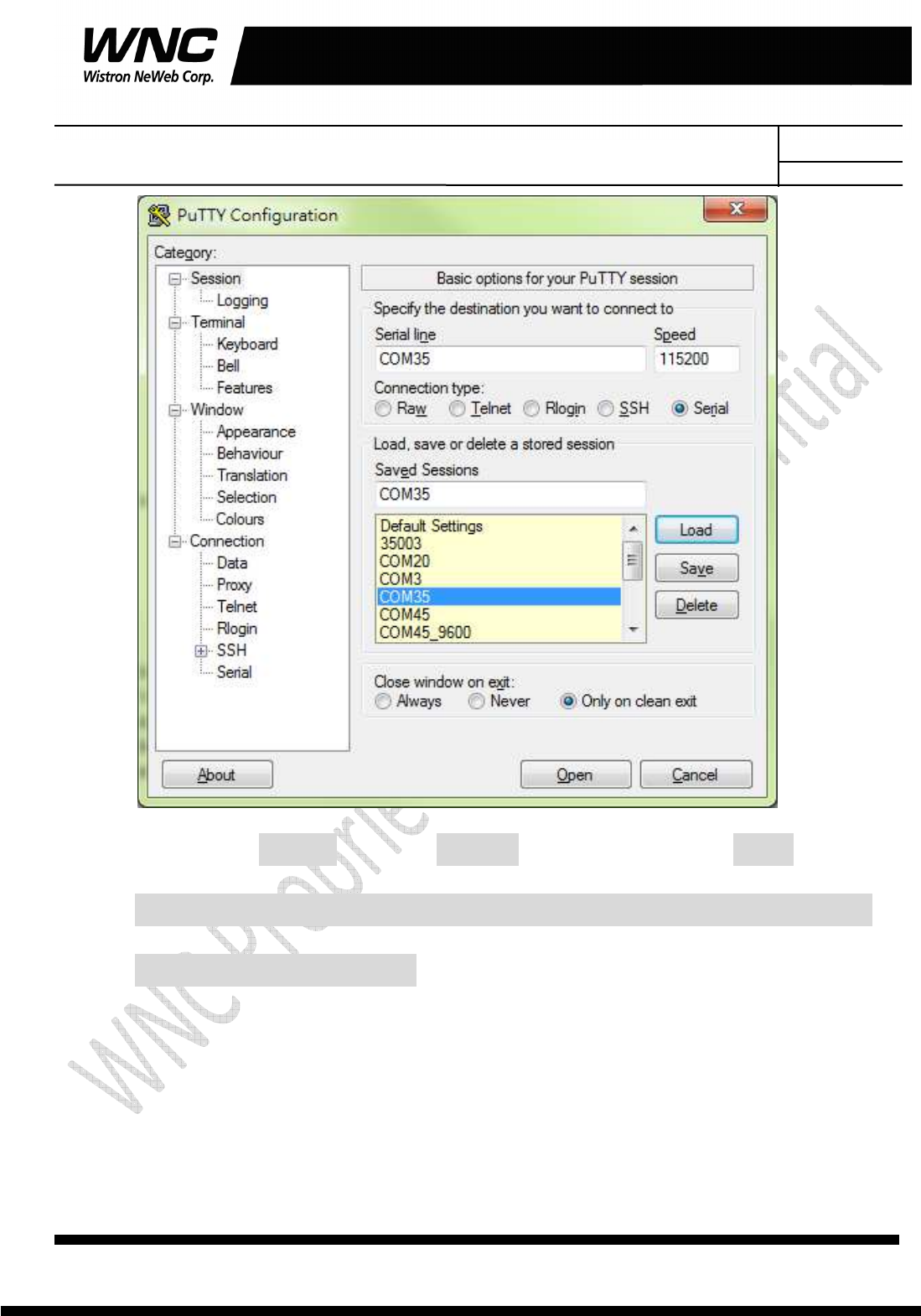 Serial Line: COMxx ; Speed: 115200 ; Connection Type: Serial