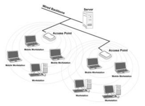 infrastructure mode, the wireless devices communicate with each other and to a wired