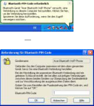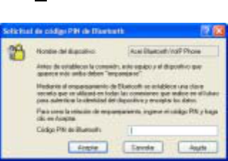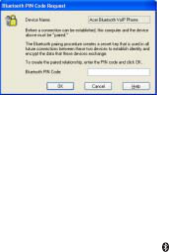 9.  按一下汽泡。出現 Bluetooth 個人識別碼 (PIN 碼) 要求 對話框。