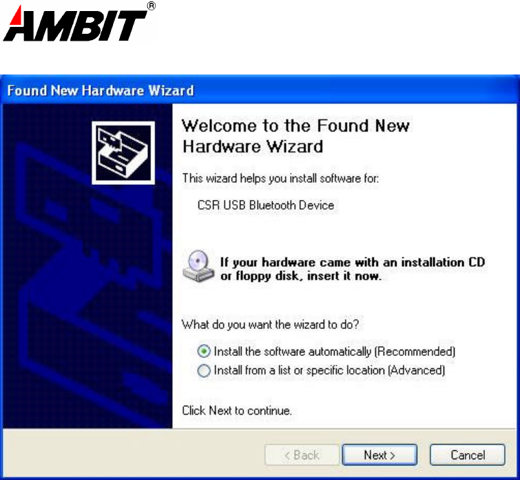1. Execute the program ‘Setup.exe’ in the CD. Windows displays the dialog as below. Click ‘Next’ to begin