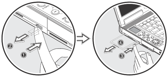 Press the slot eject button once to pop it out; then press it again to eject the PC
