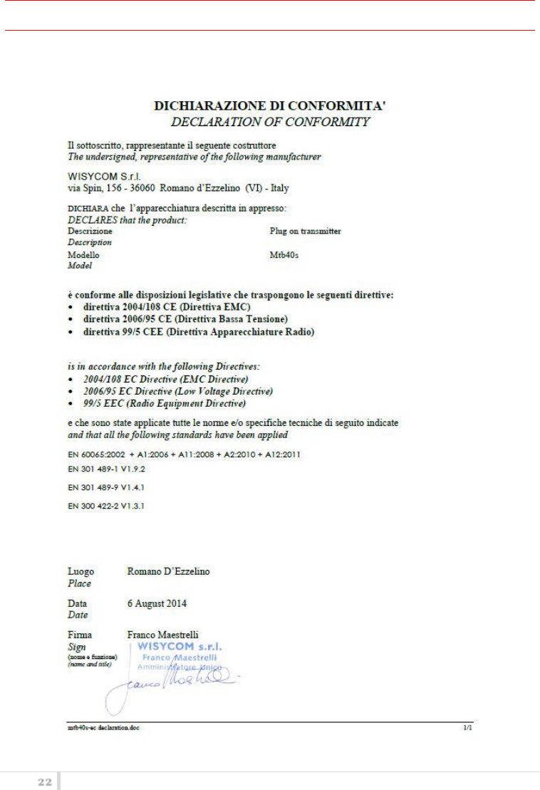 Wisycom declines all responsibility for damages to things or people caused by not following the