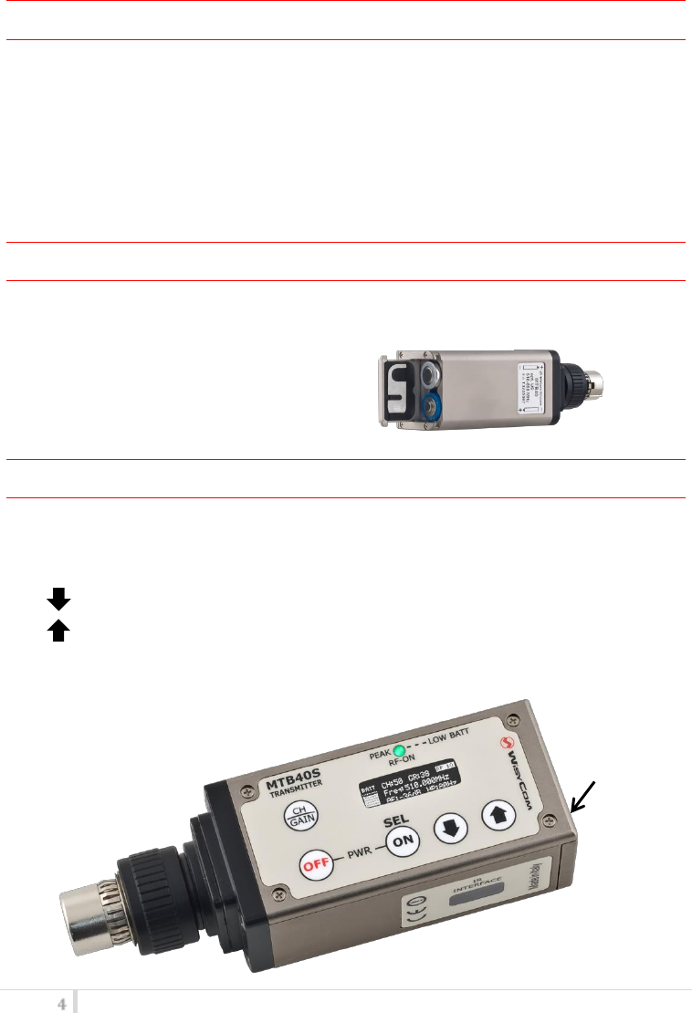 MTB40S transmitter is intended for use as plug on transmitter. In case of usage near human