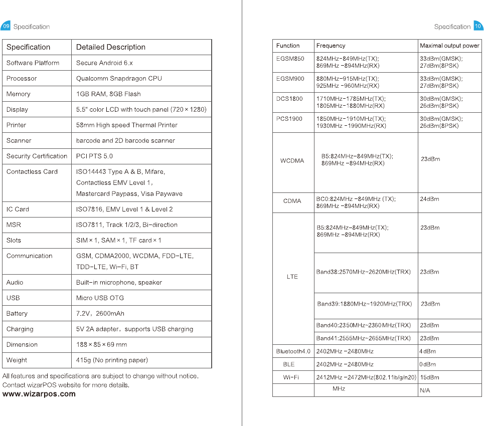 WizarPos WIZARPOSQ2 WIZARPOS User Manual Q2 EN V1 1 201801