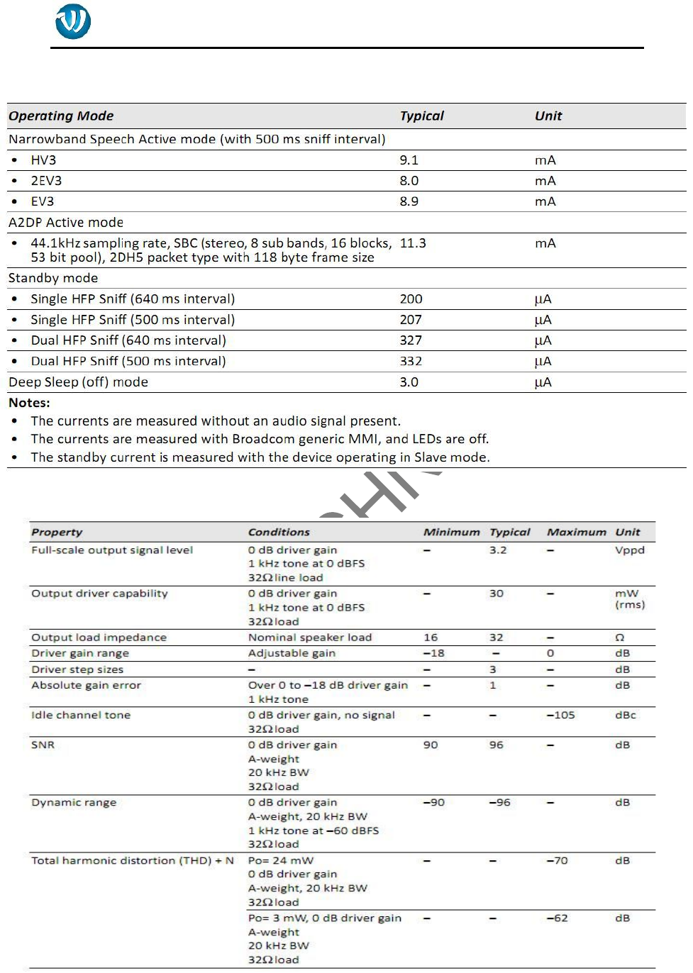 Table 4:Power Supply Current (with a Nominal 3.7V Battery Voltage)