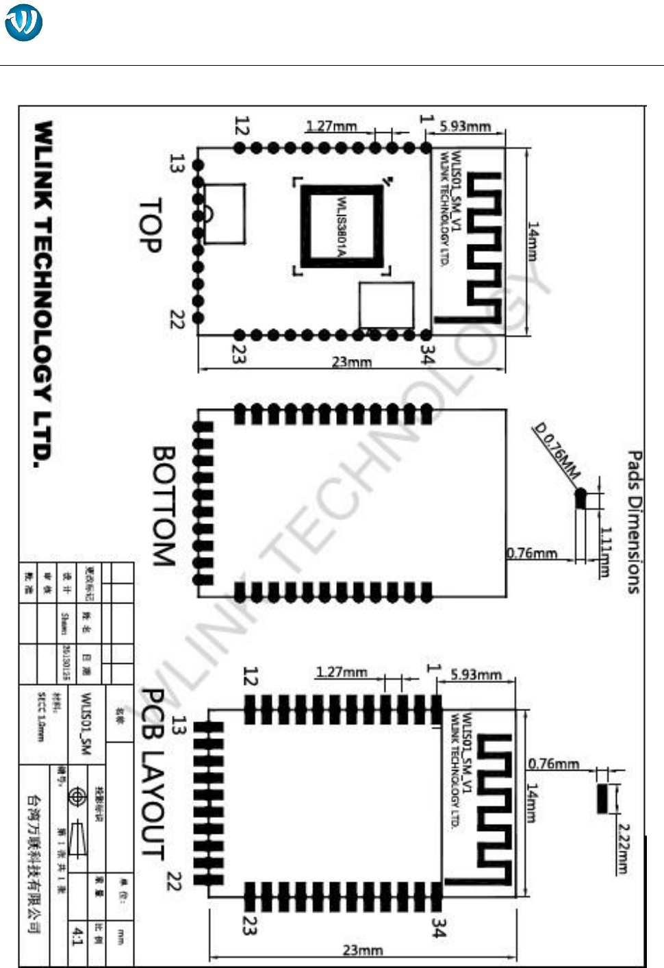 WLINK TECHNOLOGY LTD. Product Specification