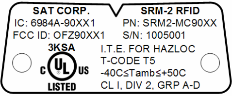 compliance, and operation of the SAT SRM2-MC90XX RFID Module. The Module