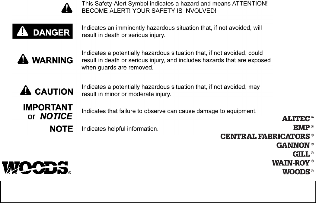 Equipment Company. All other trademarks, trade names, or service marks not owned by Woods Equipment Company that appear in this manual