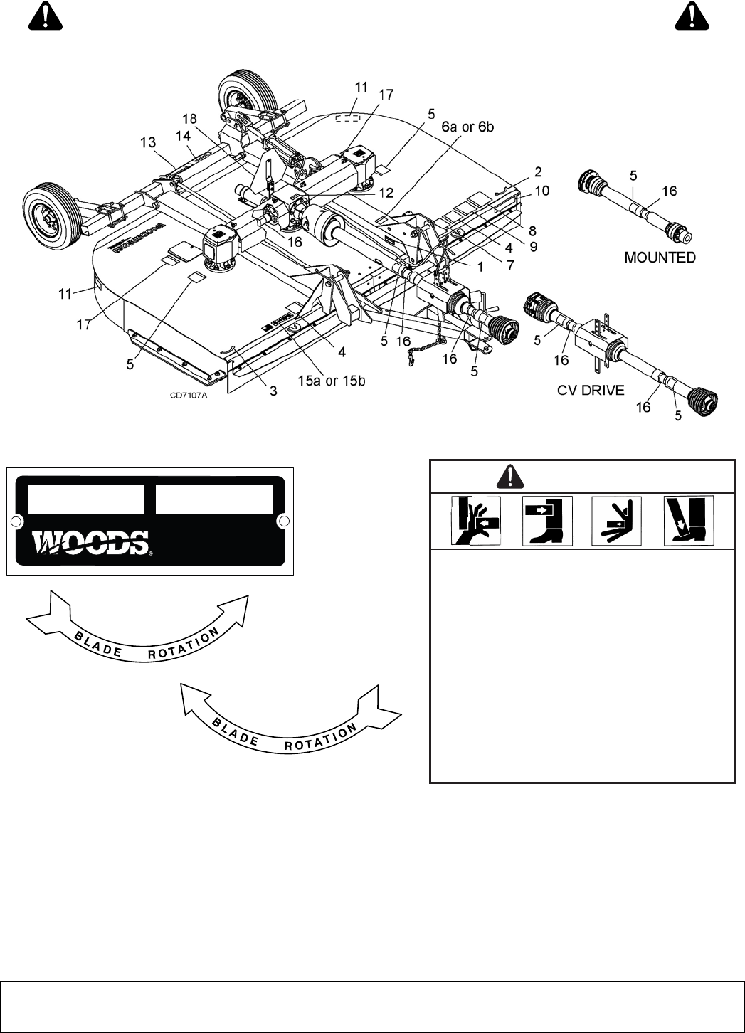 Use only genuine Woods service parts. Substitute parts will void the warranty and may not meet standards required for