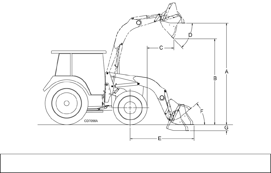 Specifications will vary with tractor, tire size, hydraulic system and bucket used. The specifications are given for a