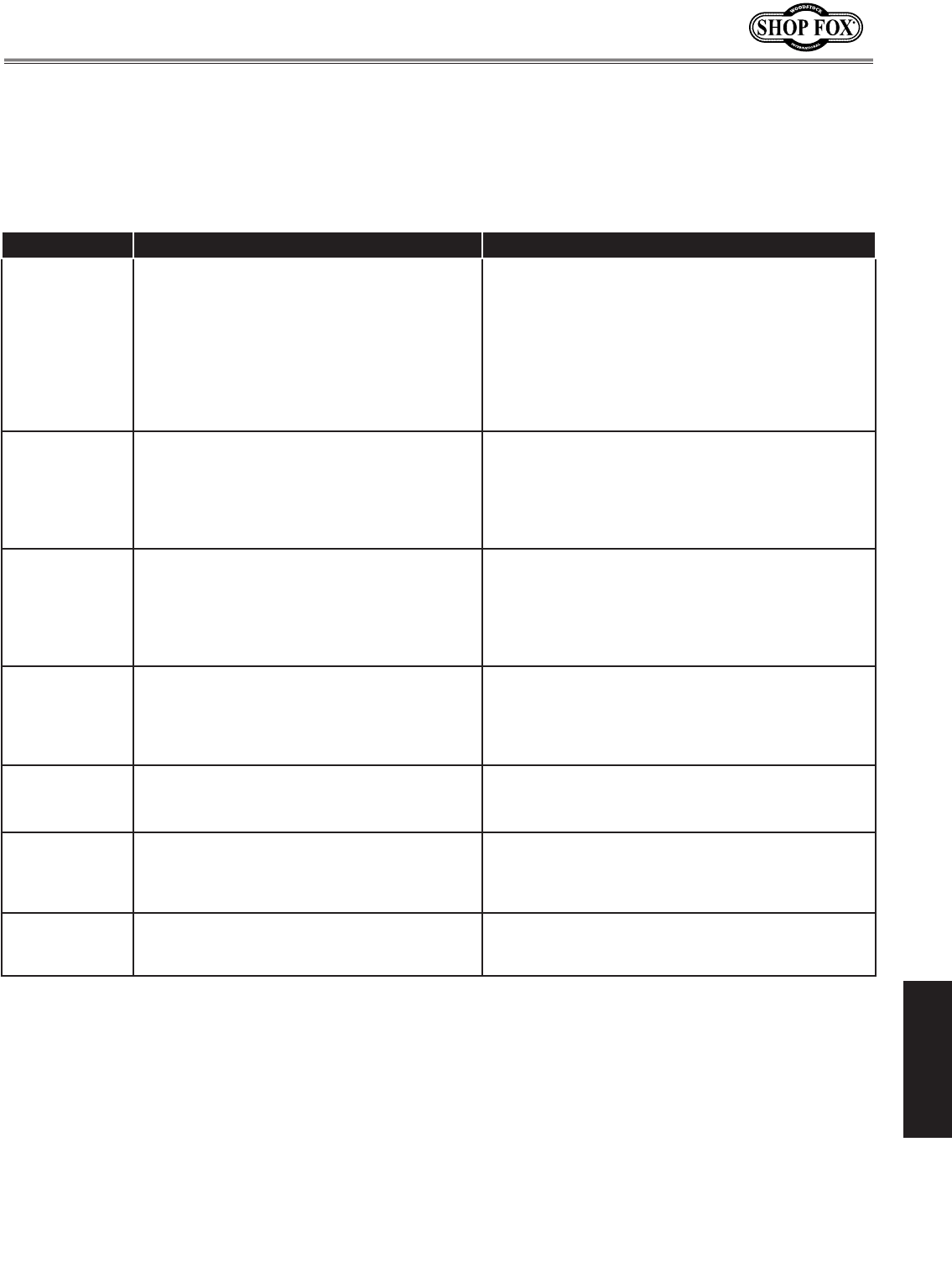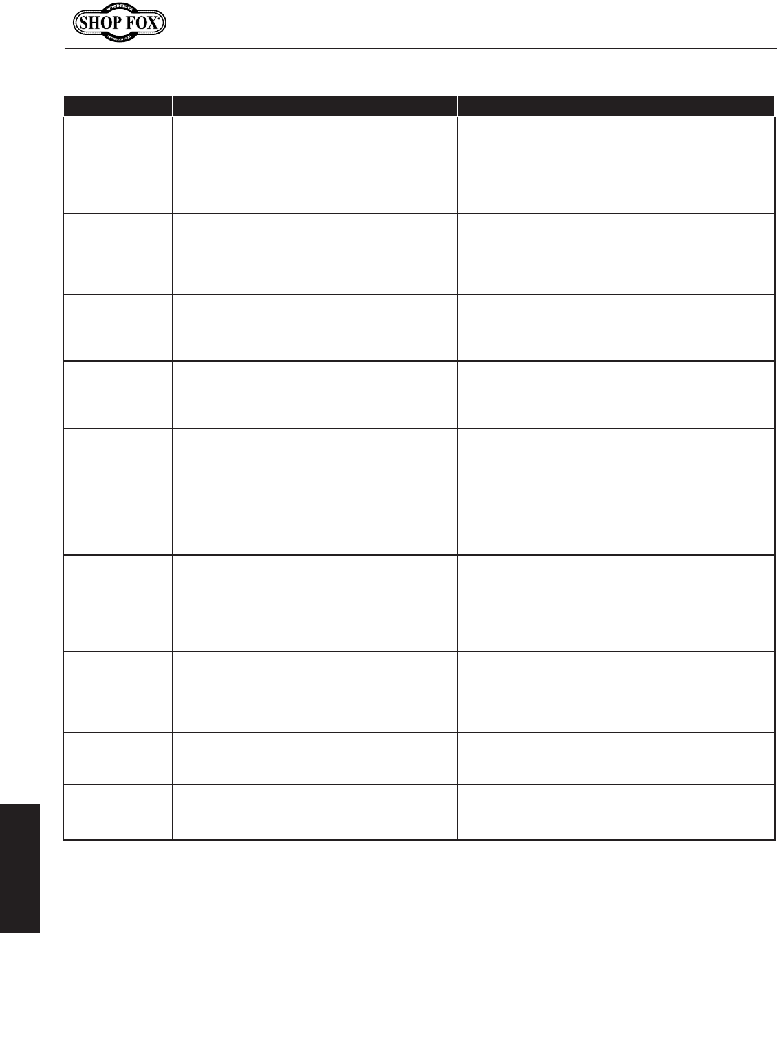 Every effort has been made to ensure that all SHOP FOX® machinery meets high quality and durabil-