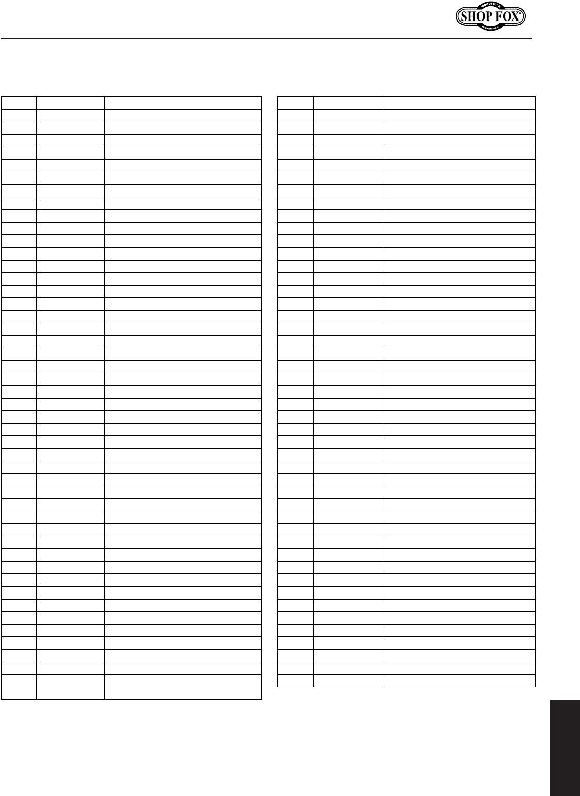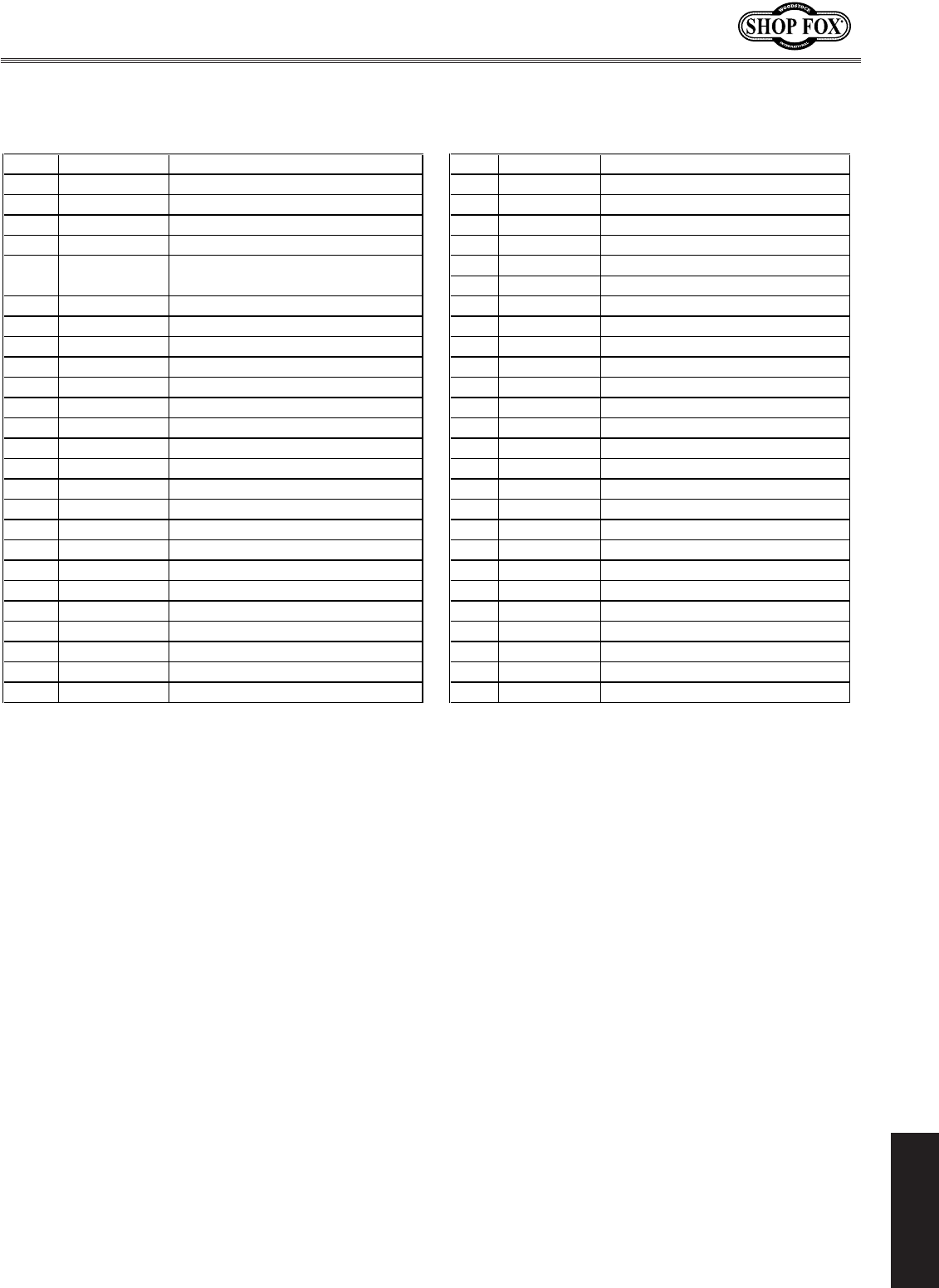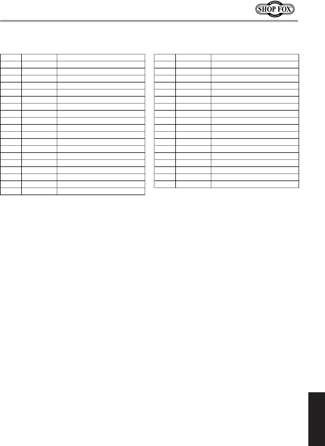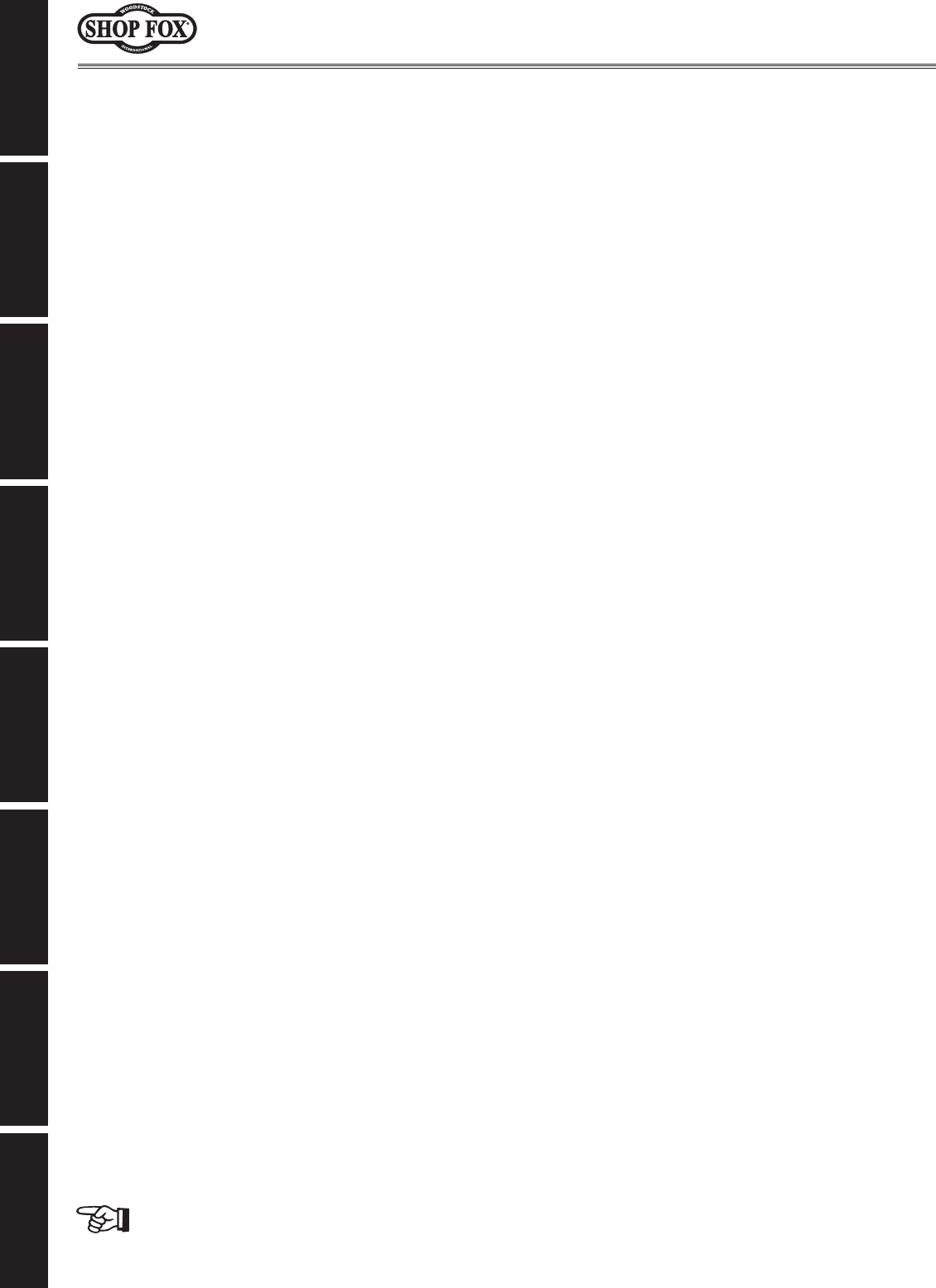 Woodstock International, Inc. warrants all SHOP FOX® machinery to be free of defects from work-