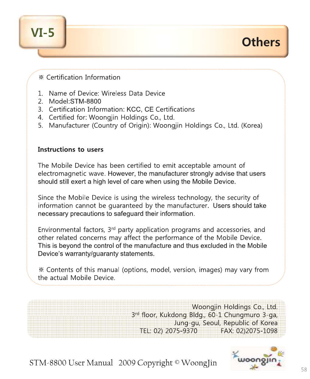 Woongjin STM-8800 Industrial PDA User Manual manual part 3