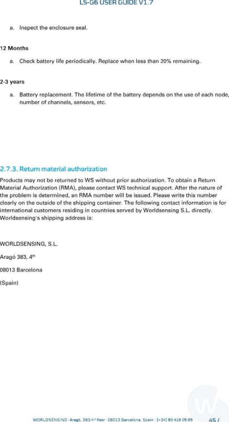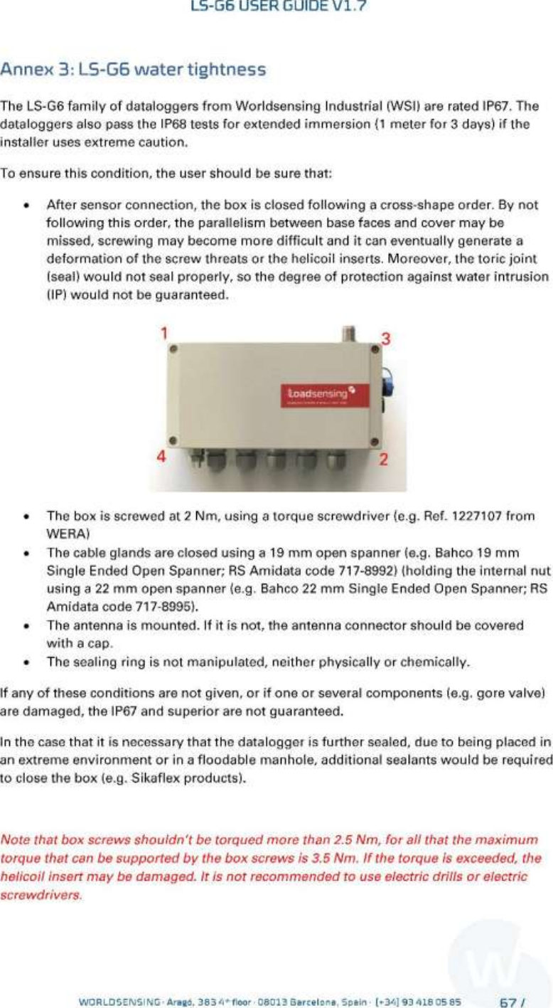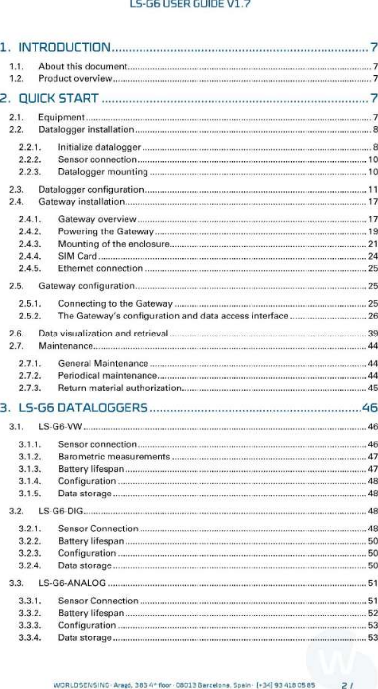 Worldsensing S L LG-G6-DIG-2 Digital wireless datalogger User Manual User guide