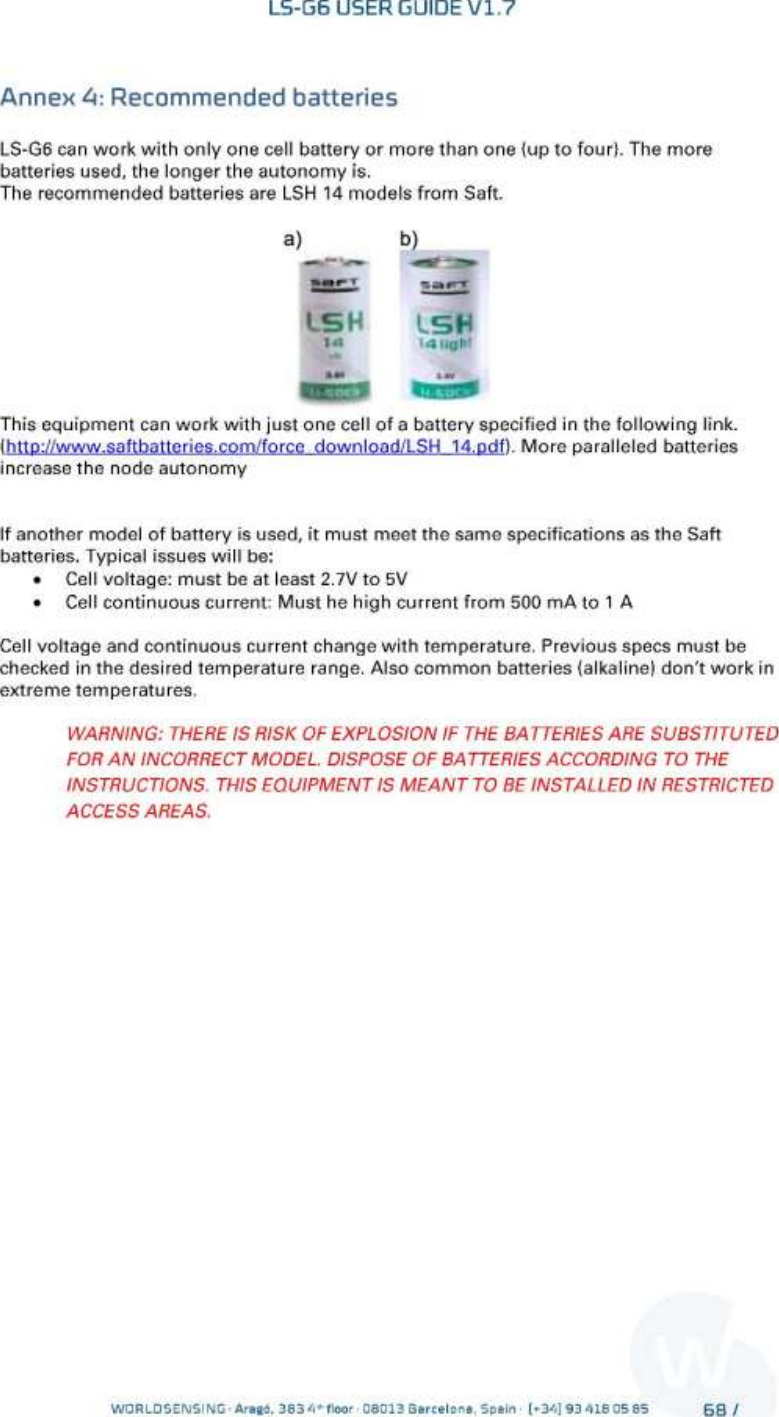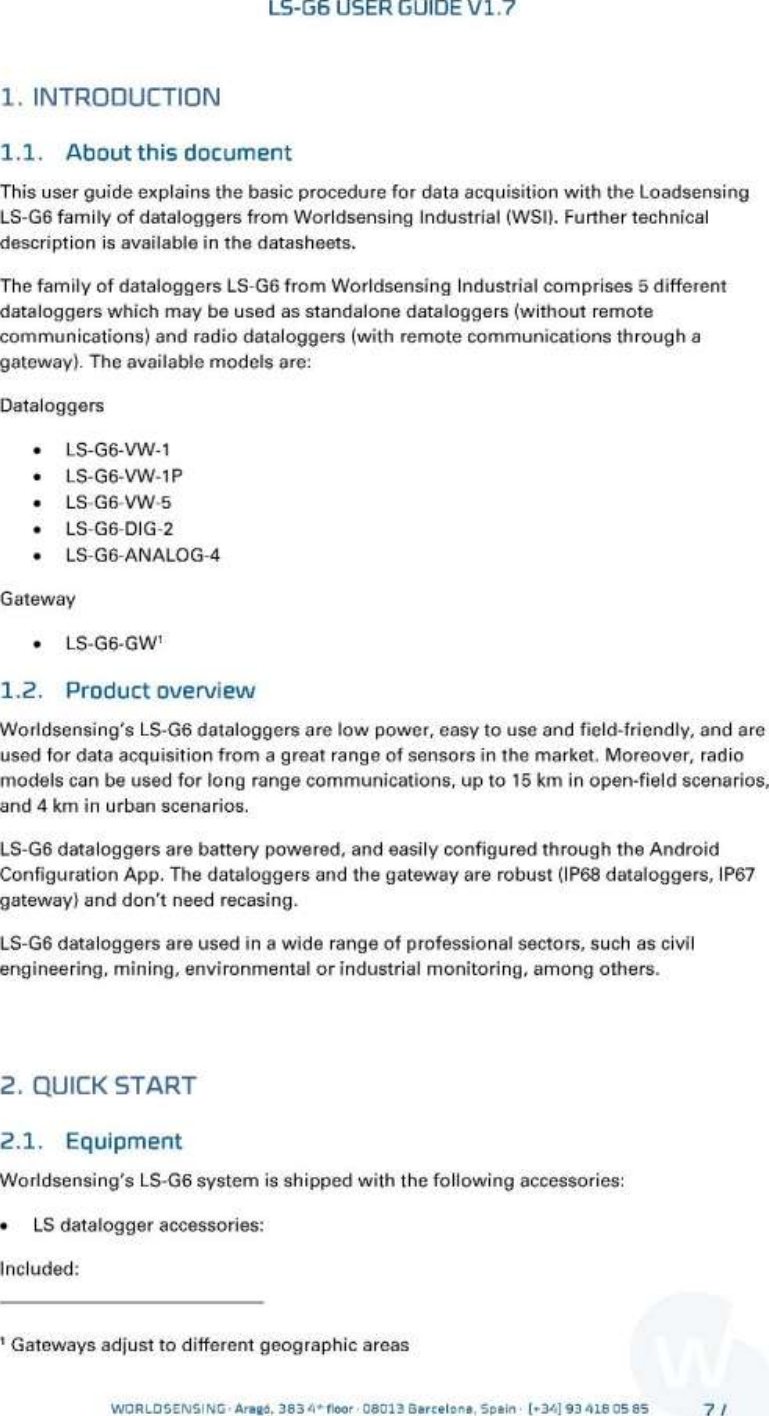 Worldsensing, S.L. Digital wireless datalogger User guide