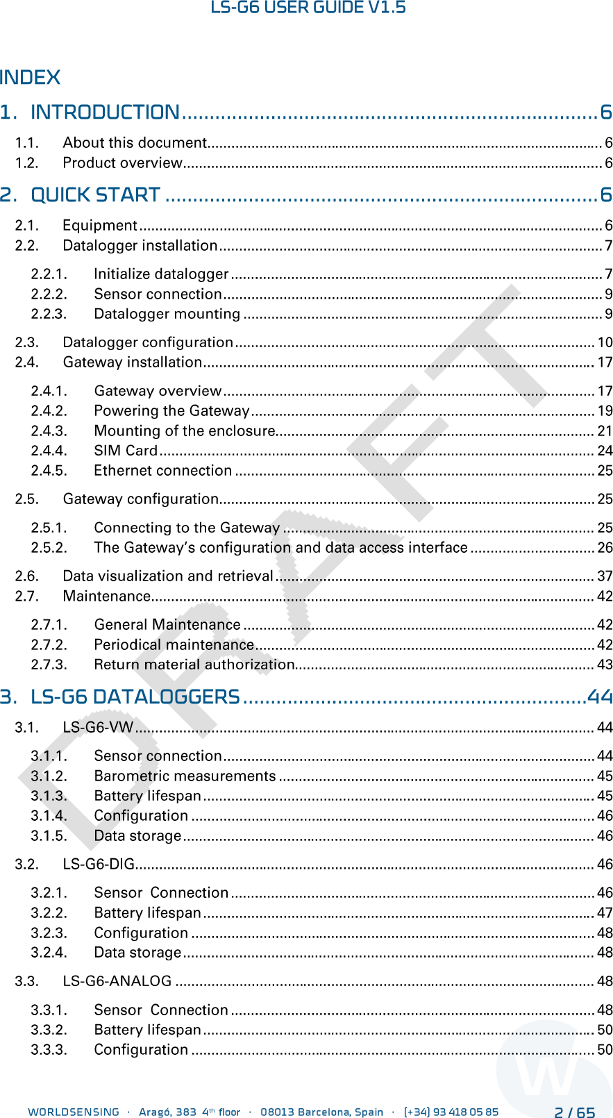 Worldsensing S L LS-G6-VW Vibrating wire wireless datalogger User Manual 1