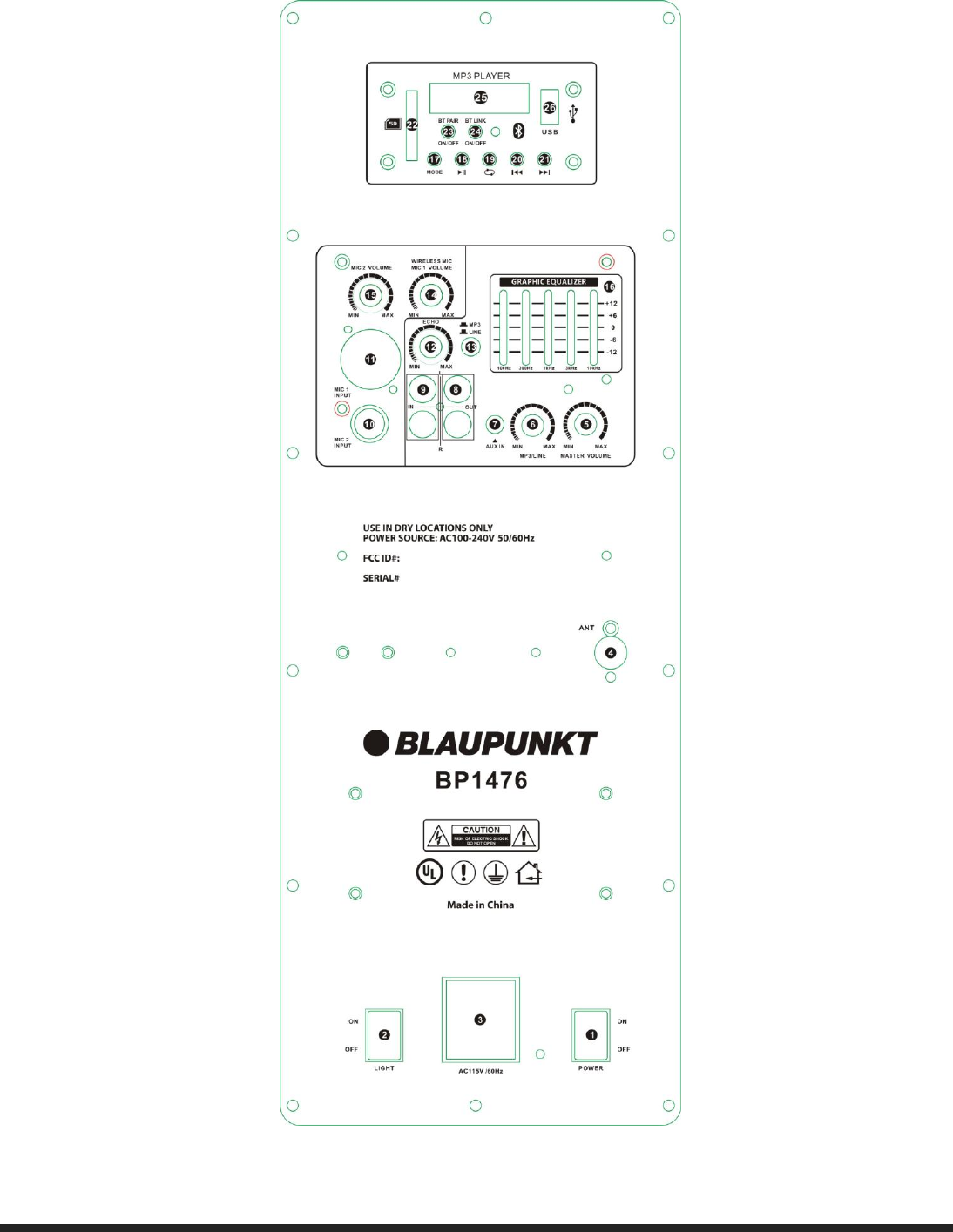 13. MP3 Switch: It allows to switch on /off the MP3 player and Line In.