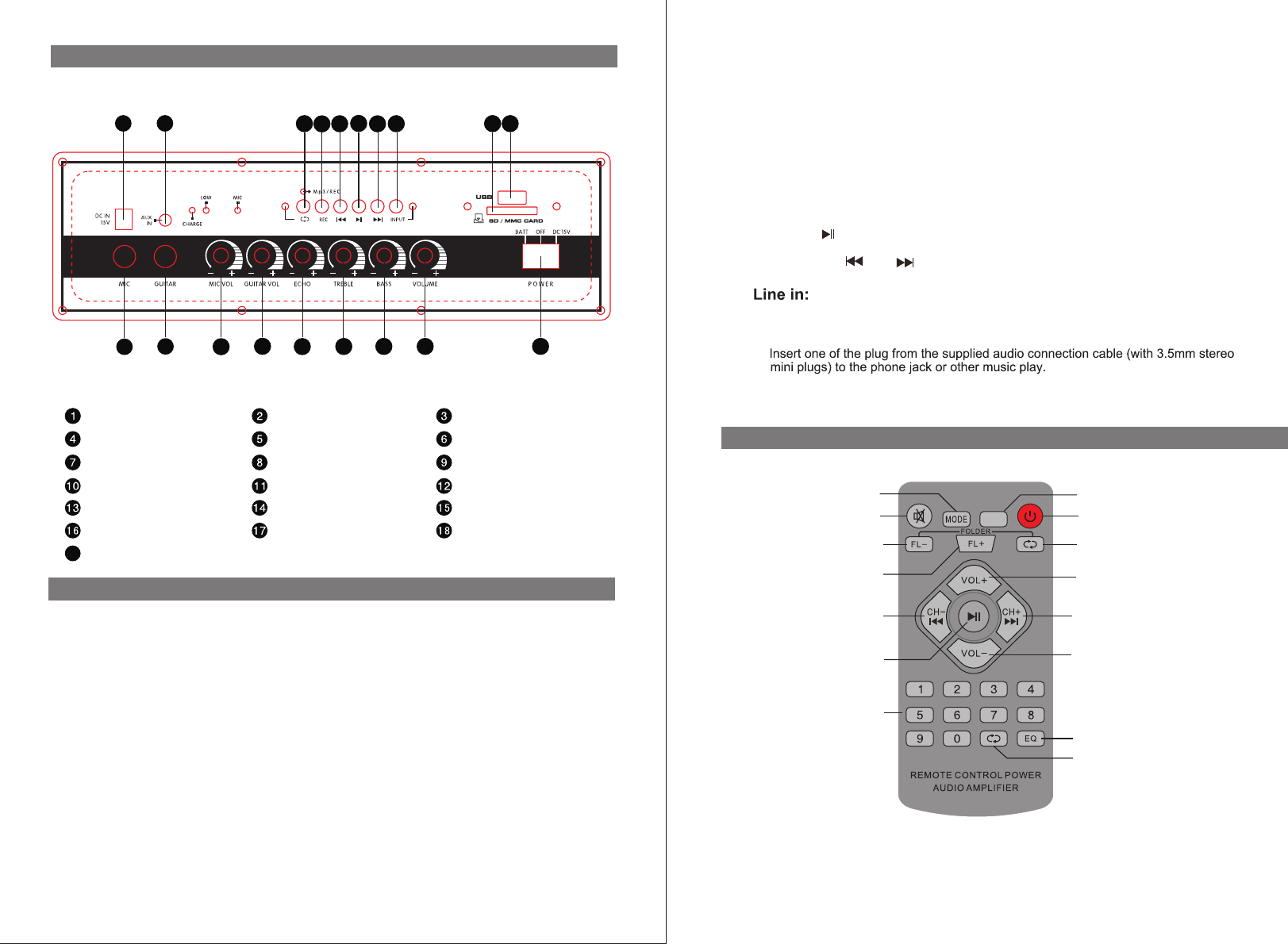 Line in mode, FM mode, Bluetooth mode.USB/SD card mode,