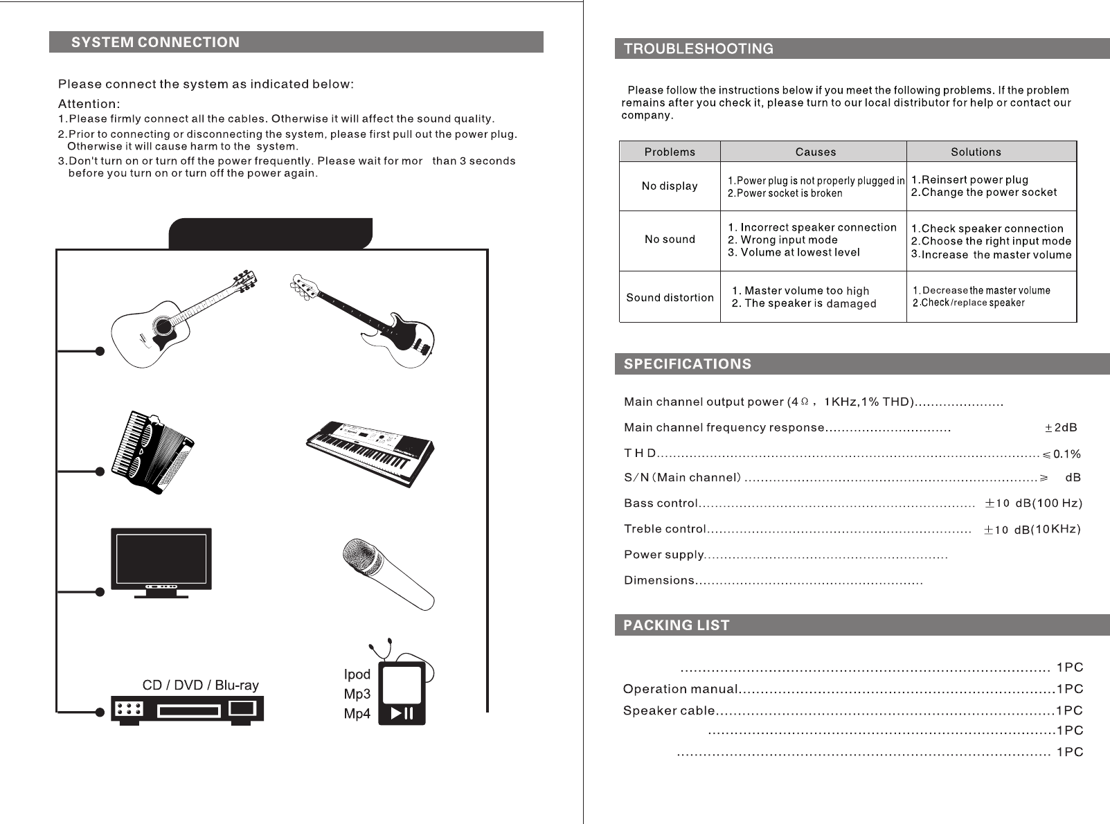 Thank you for purchasing this drawbar active speaker system from our company. We have