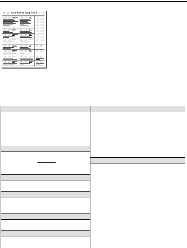 4. A laminated RF Laser Reader Setup Menu sheet.