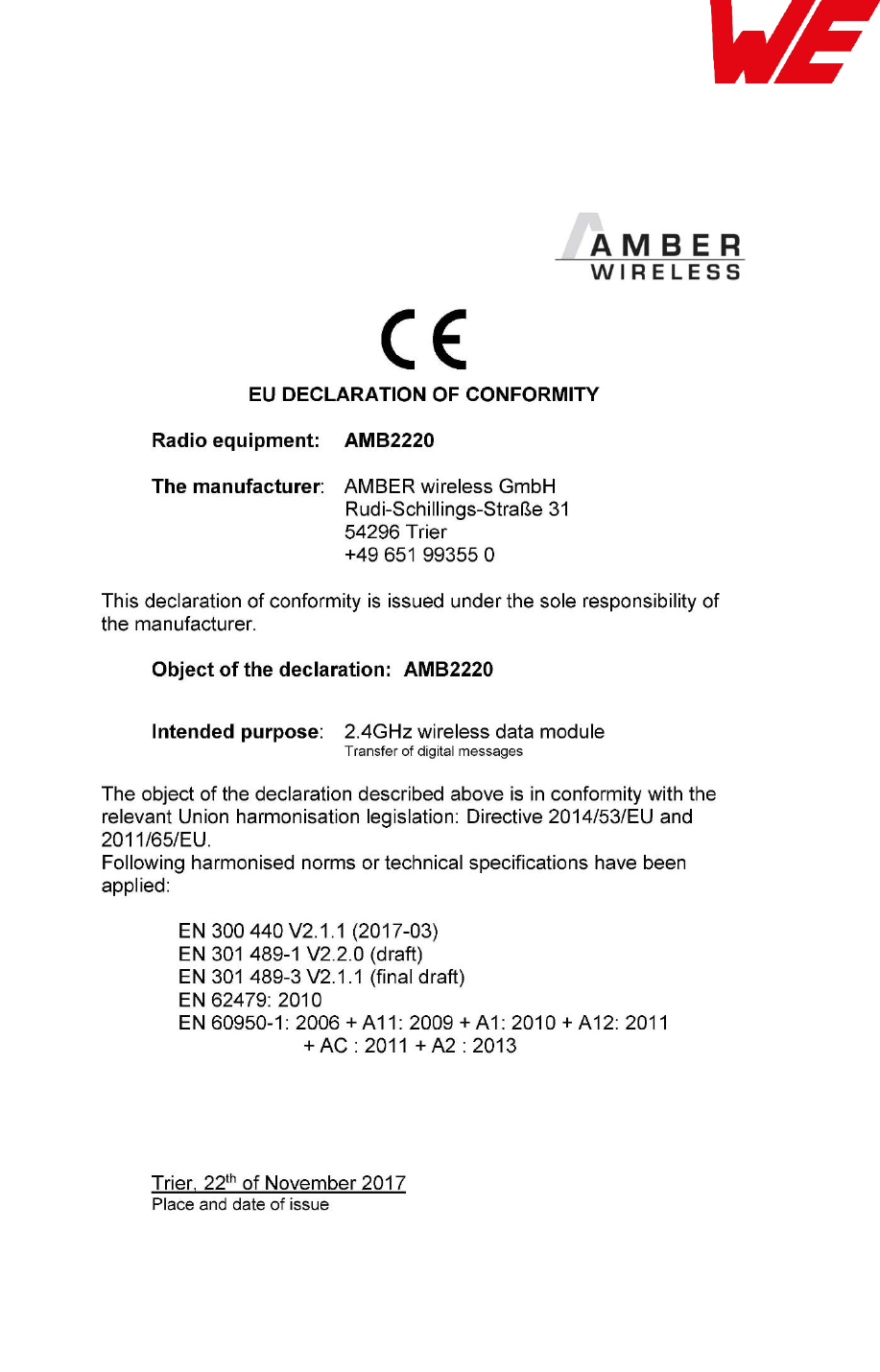 AMB2220_MA_3_12 Page 2 of 48 Date: 05/2018