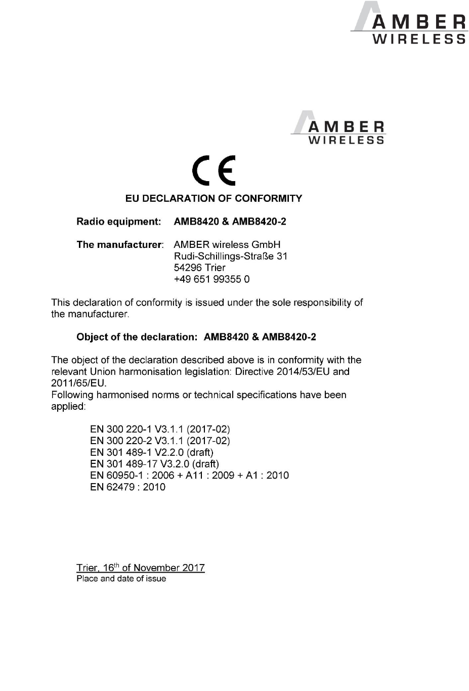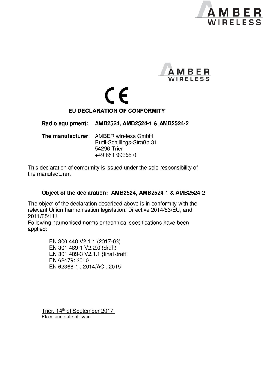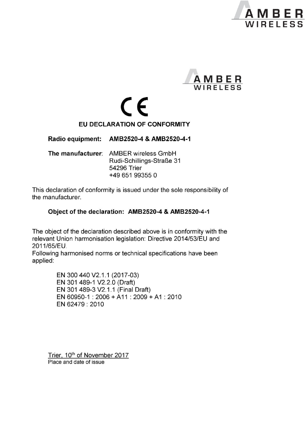 (EU). The AMB2520-4 can be operated without notification and free of charge in the area of the