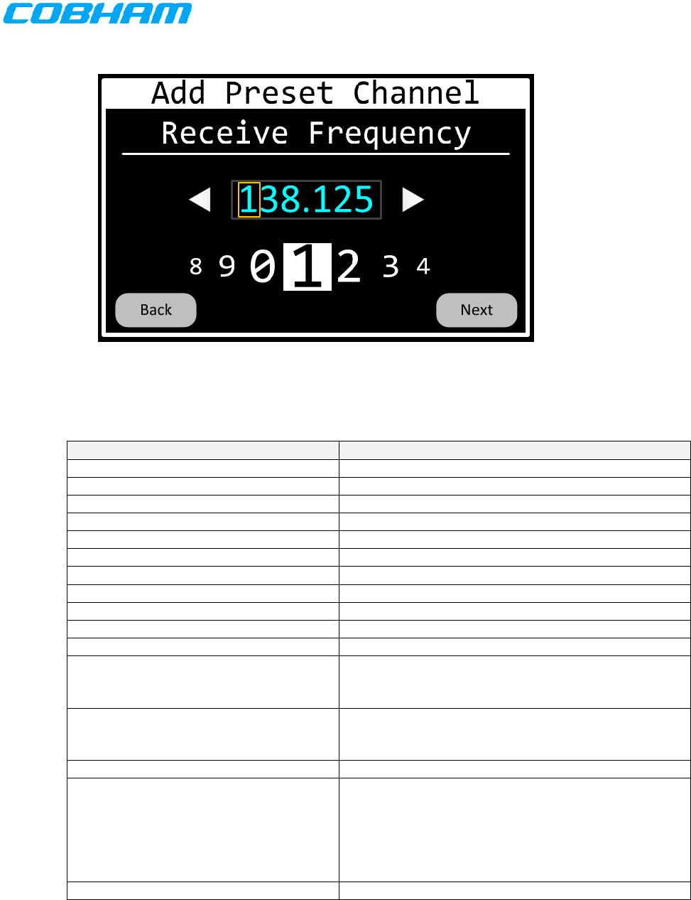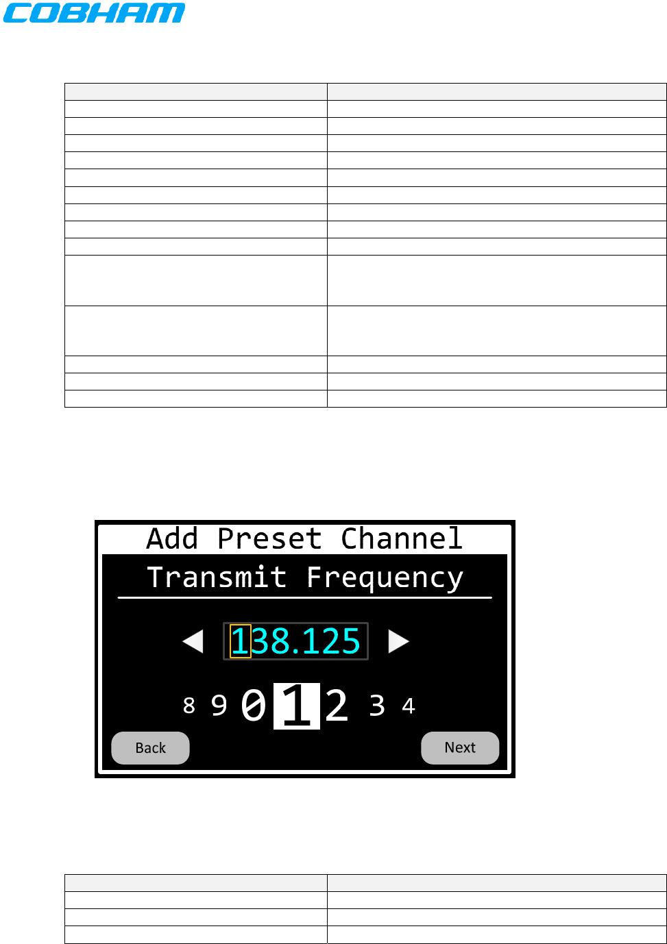 Table 51 Control Head Tuning in 8.33 KHz Mode