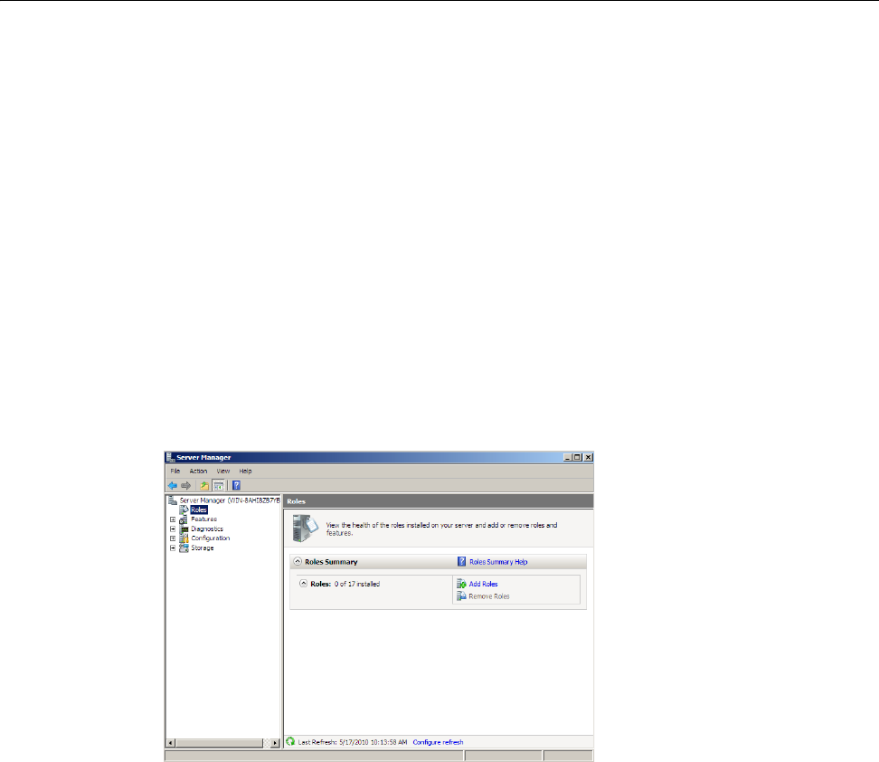 2. In the Server Manager tree pane, select Roles, and then click Add Roles to open the