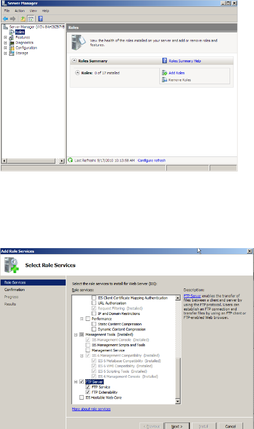 4. In the Add Roles wizard, click Server Roles > Web Server (IIS) > Role Services.