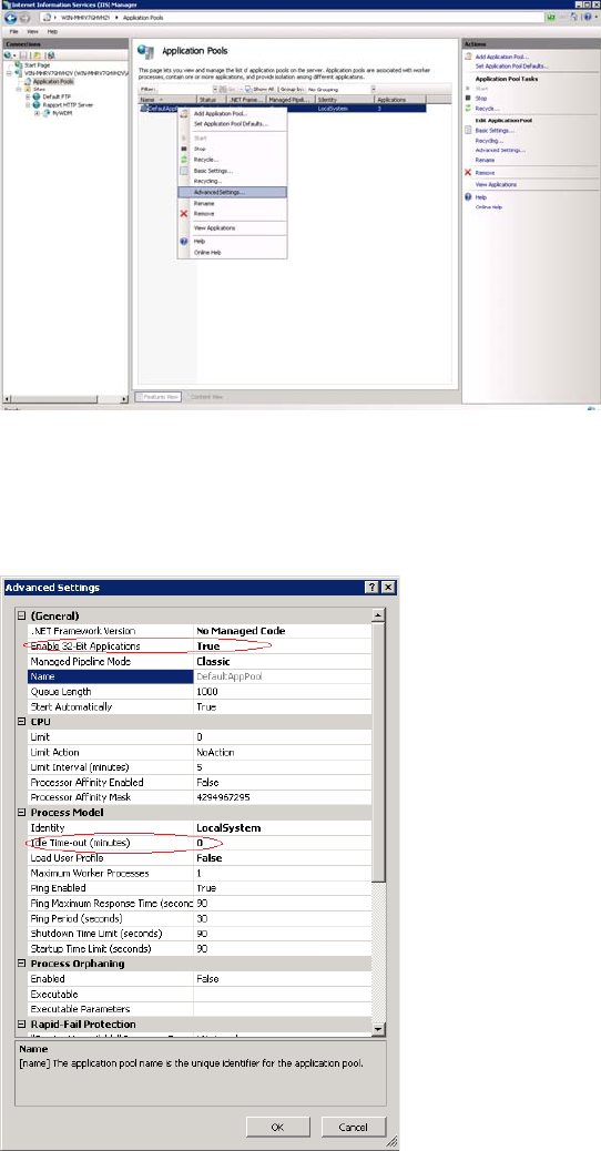 c. Right-click the DefaultAppPool and select Advanced Settings to open the