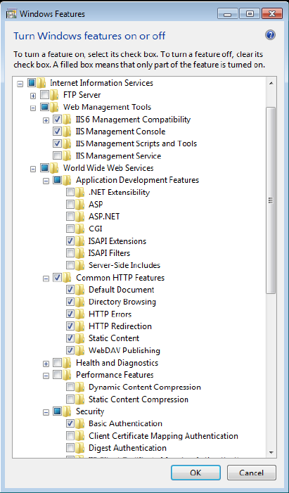 8. Under World Wide Web Services, expand Performance Features, and then be sure