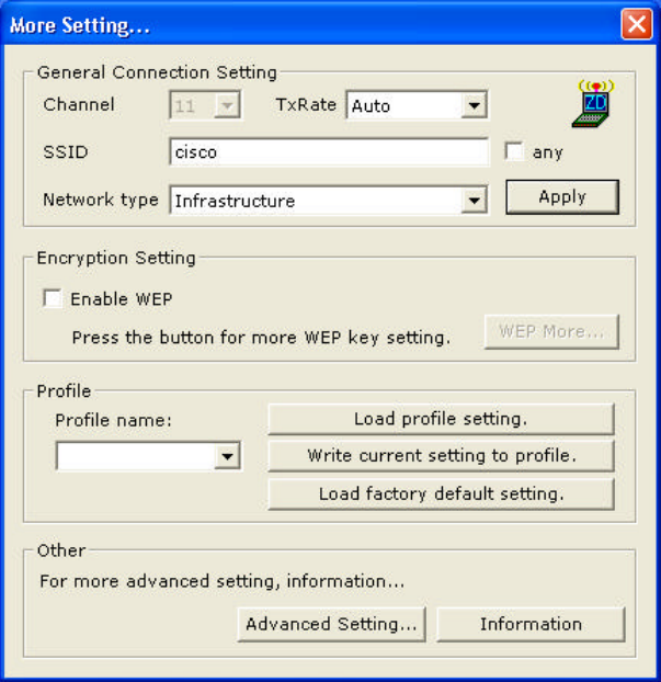 Security 64-bit or 128-bit WEP (Wired Equivalent Privacy)