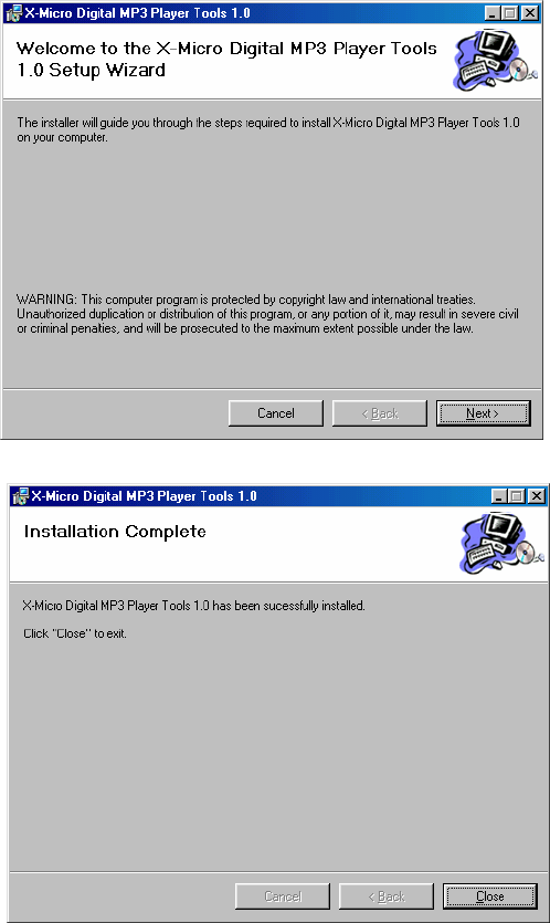 1.5 The system requirement of X-Micro Digital MP3 Player 2