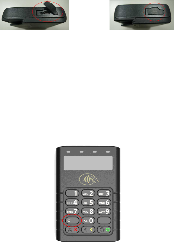 Find the magnetic card reader slot on the right side of the device (Figure 4). Swipe the card