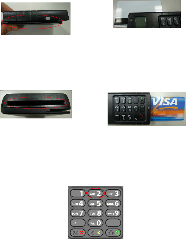 through the slot with magnetic stripe side facing the same direction as the keypad (Figure 5).