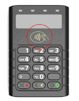 Contactless reader antenna is around the display and PIN pad. It will light up with LED signal