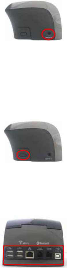 Find the power input on the right side of the terminal. Connect the plug from the power adapter into the power