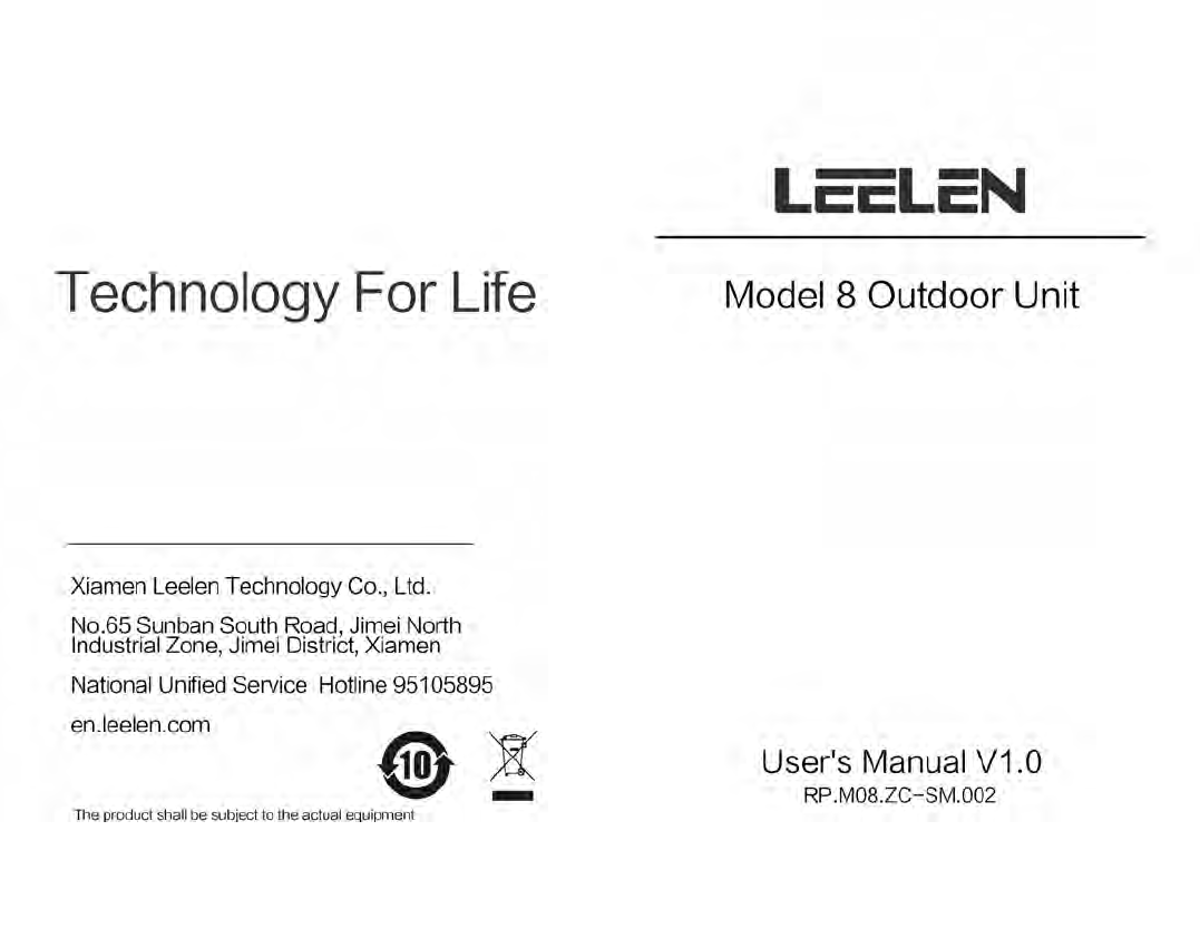 XIAMEN LEELEN TECHNOLOGY CO., LTD Outdoor Unit Users Manual