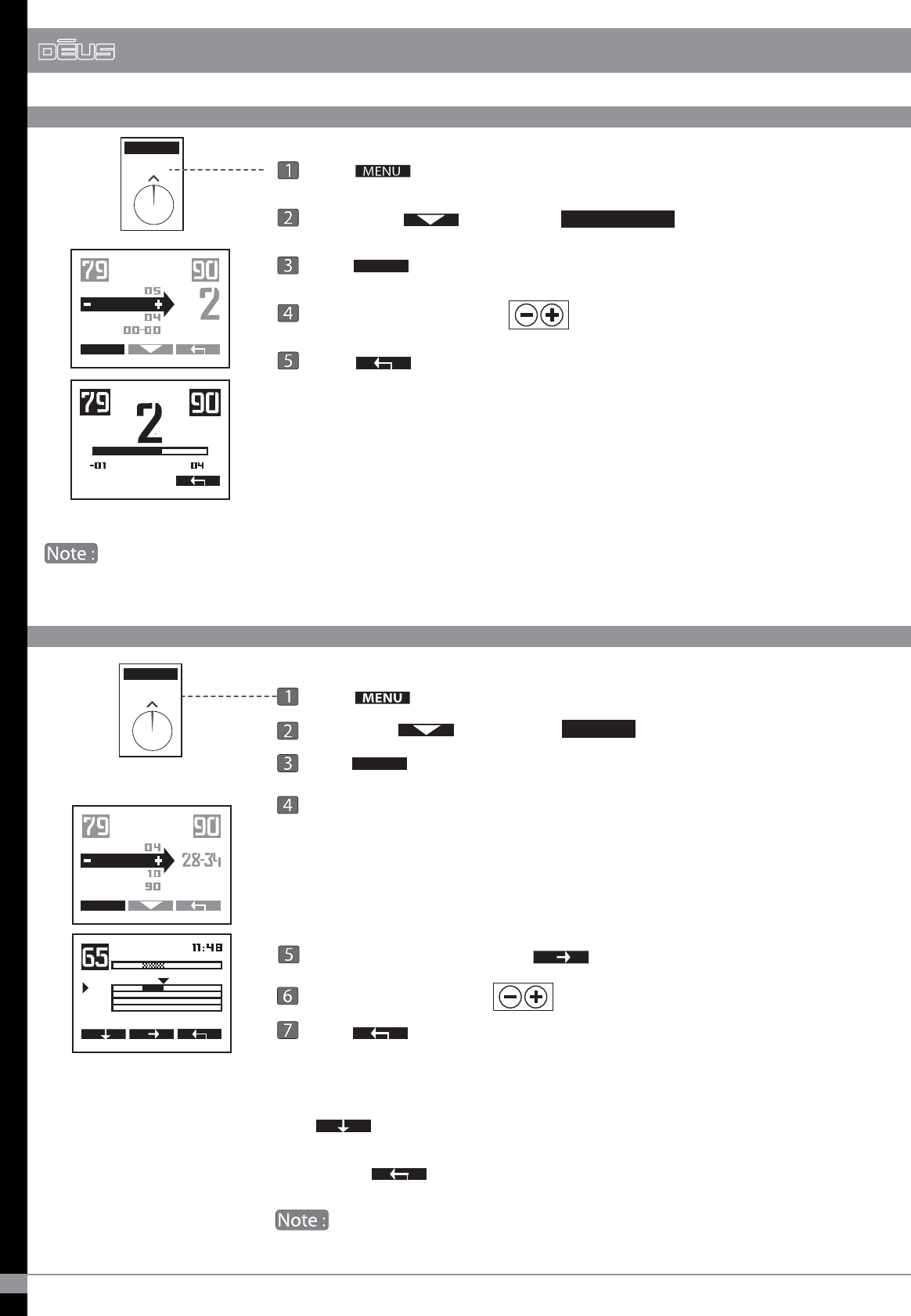 Press Menu Set with - / + Press return arrow