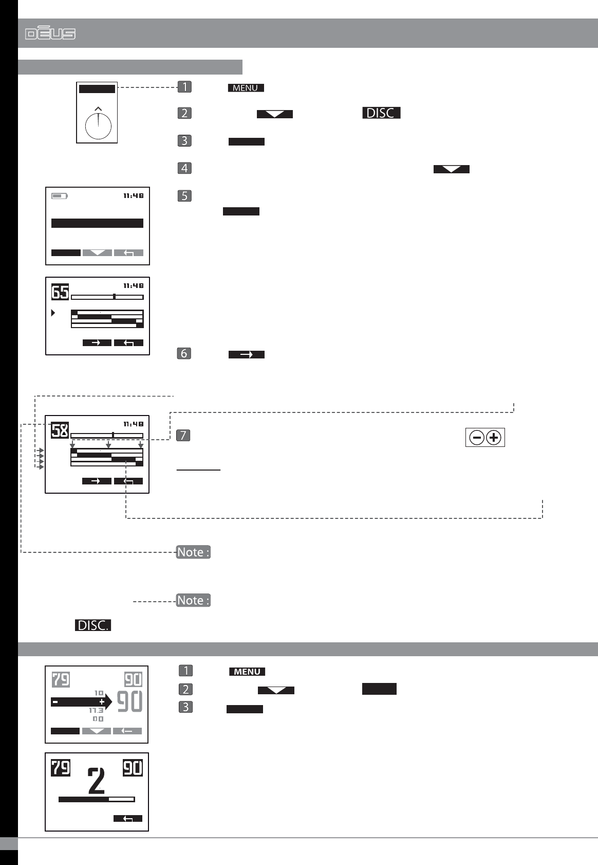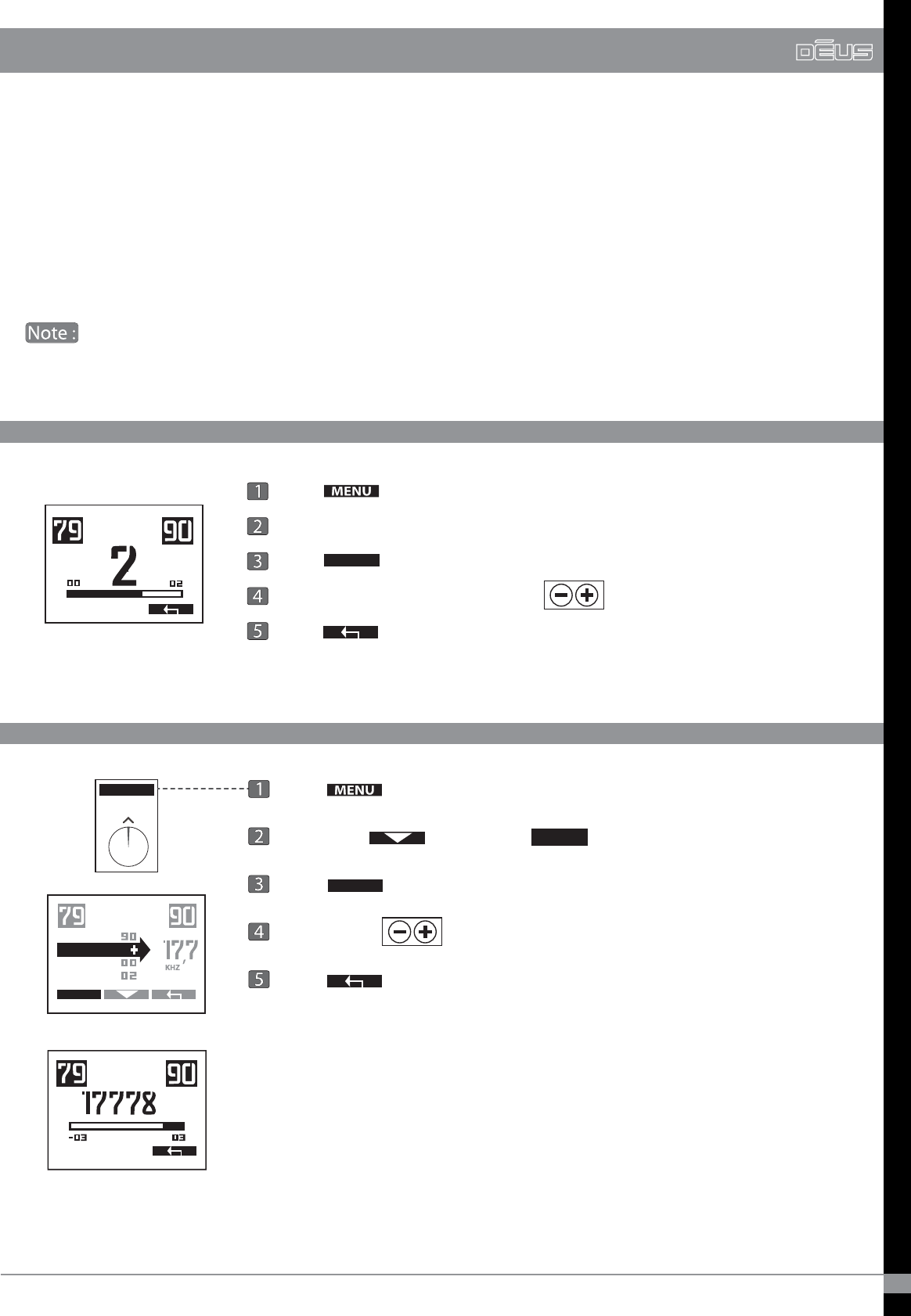 Press Menu Set with - / + Press return arrow
