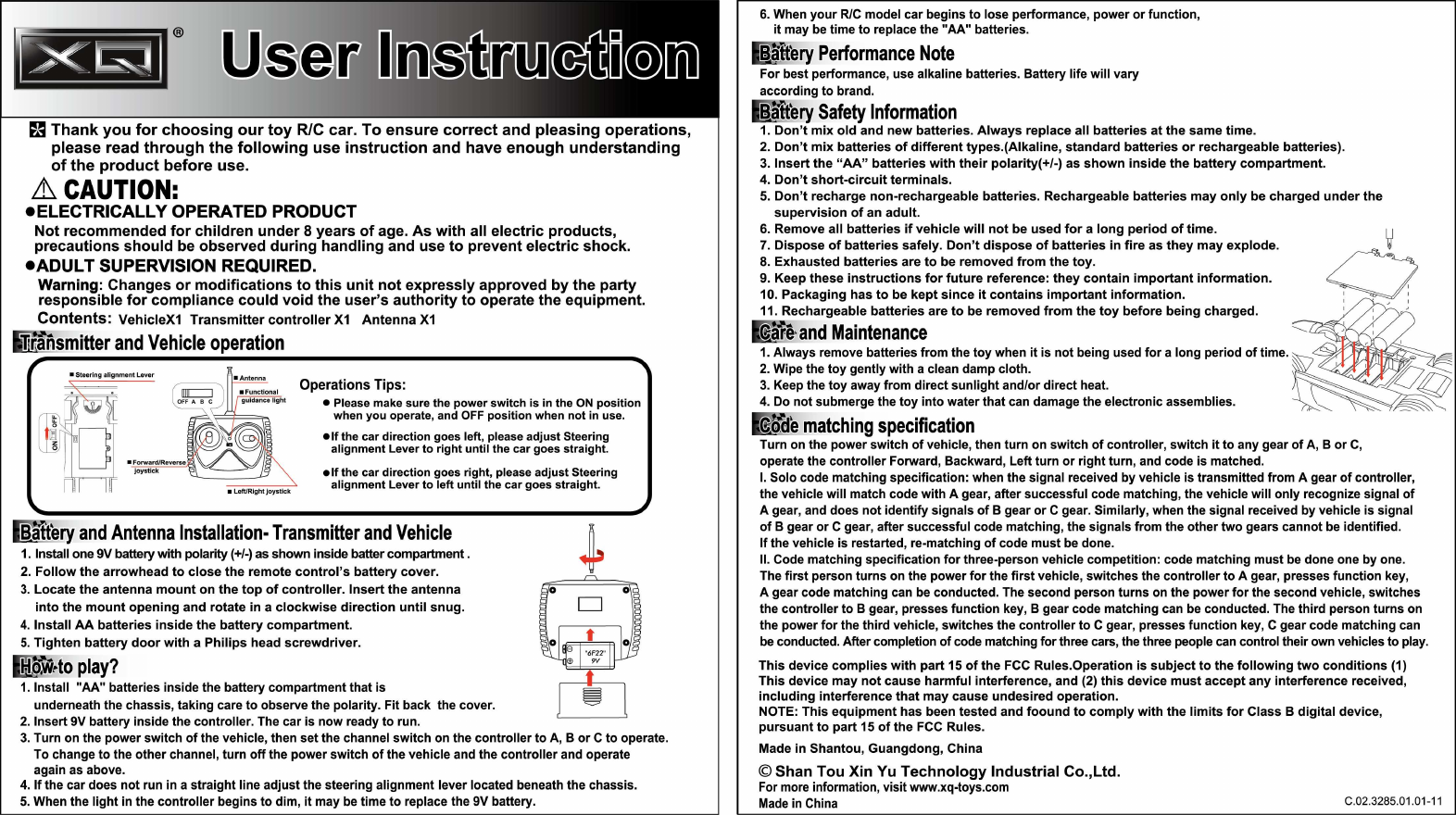 XQ ARTS TOYS XQ3484TX27MH RC Toys User Manual New