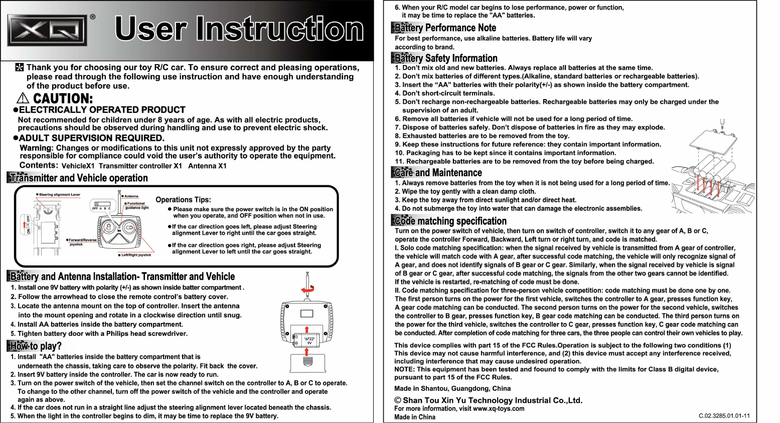 XQ ARTS TOYS XQ3484TX27MH RC Toys User Manual New