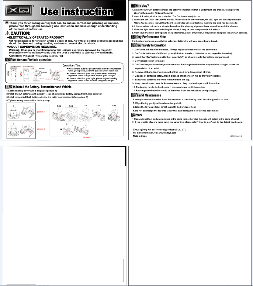 XQ ARTS TOYS XQ3708TX2GBYH R/C Toys User Manual