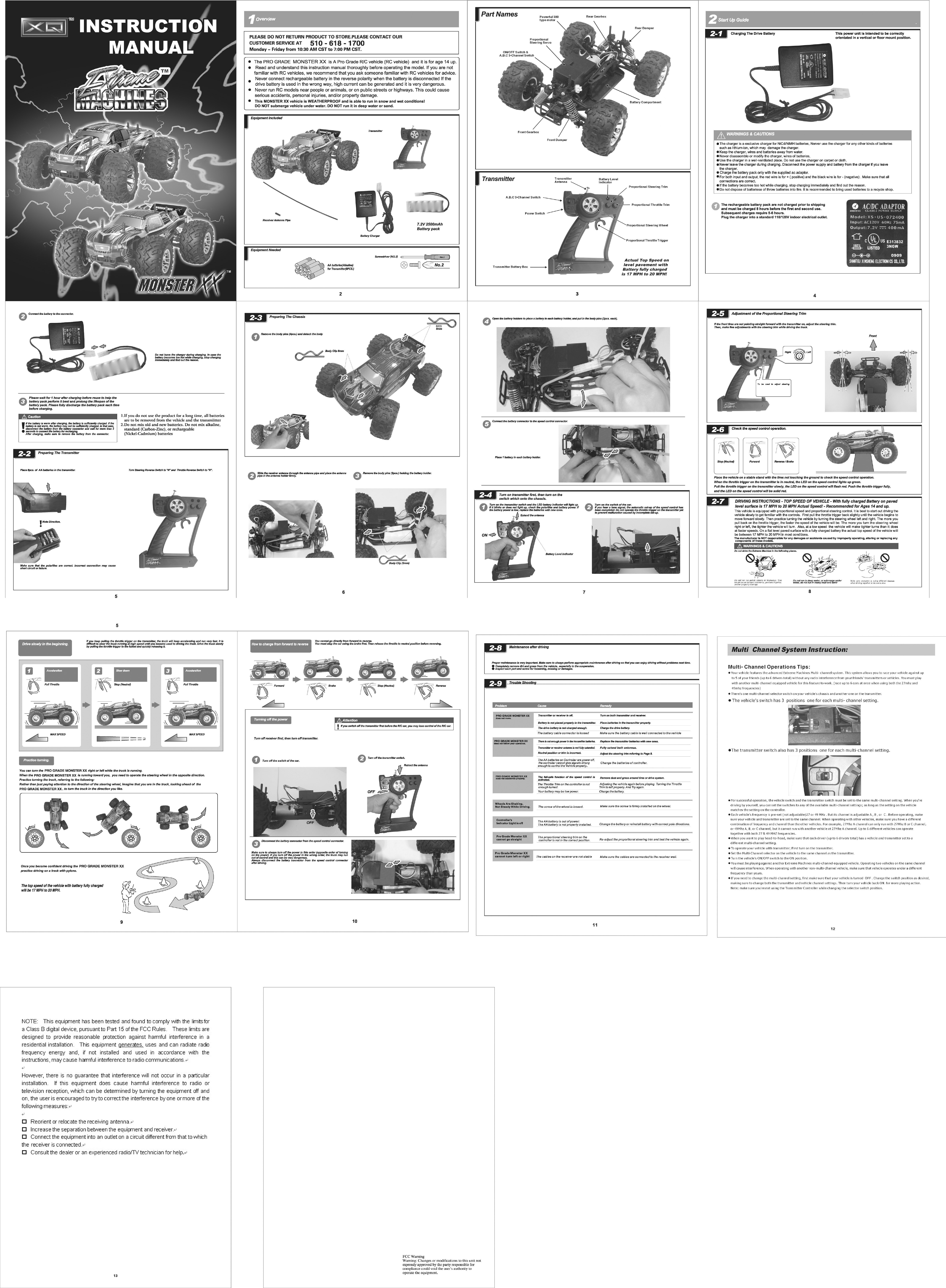 XQ ARTS TOYS CO., LTD EXTREME MACHINES 1:16 PRO GRADE R/C Users Manual