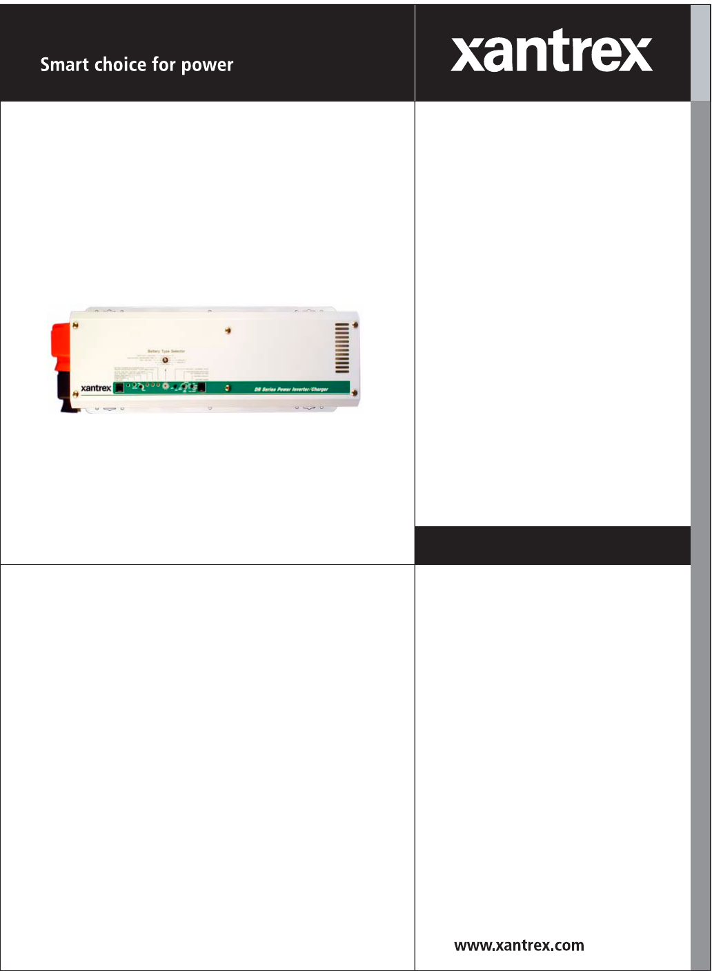 DR Inverter/Charger is a trademark of Xantrex International. Xantrex is a registered trademark of Xantrex