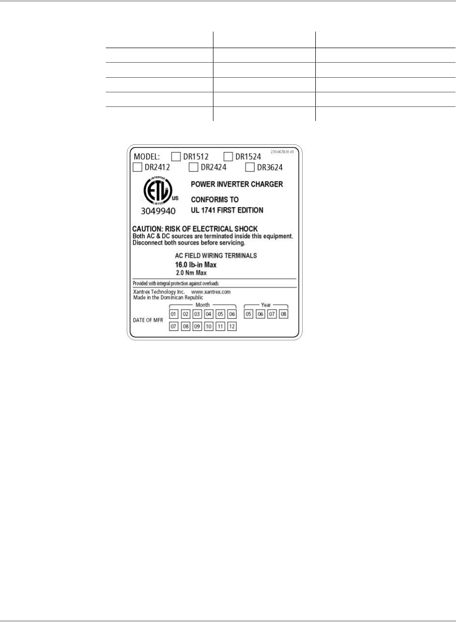DR Inverter/Charger Installation and Operations Manual © March 2005 Xantrex International. All rights reserved.