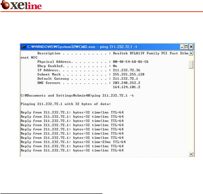 < ping Default Gateway IP –t >