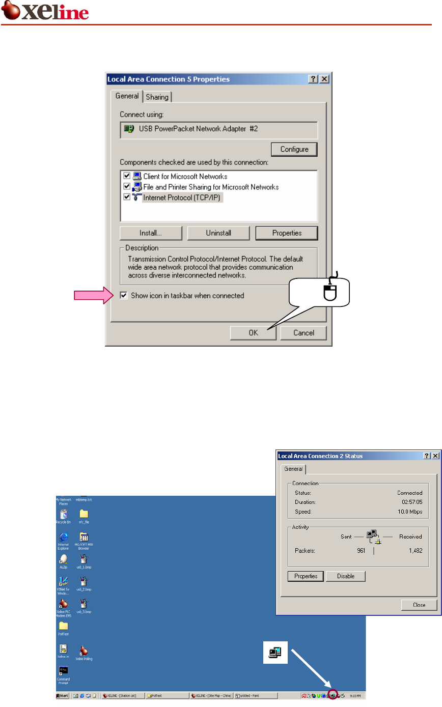 ⑤ Select the SHOW ICON IN TASKBAR WHEN CONNECTED option and click [OK].