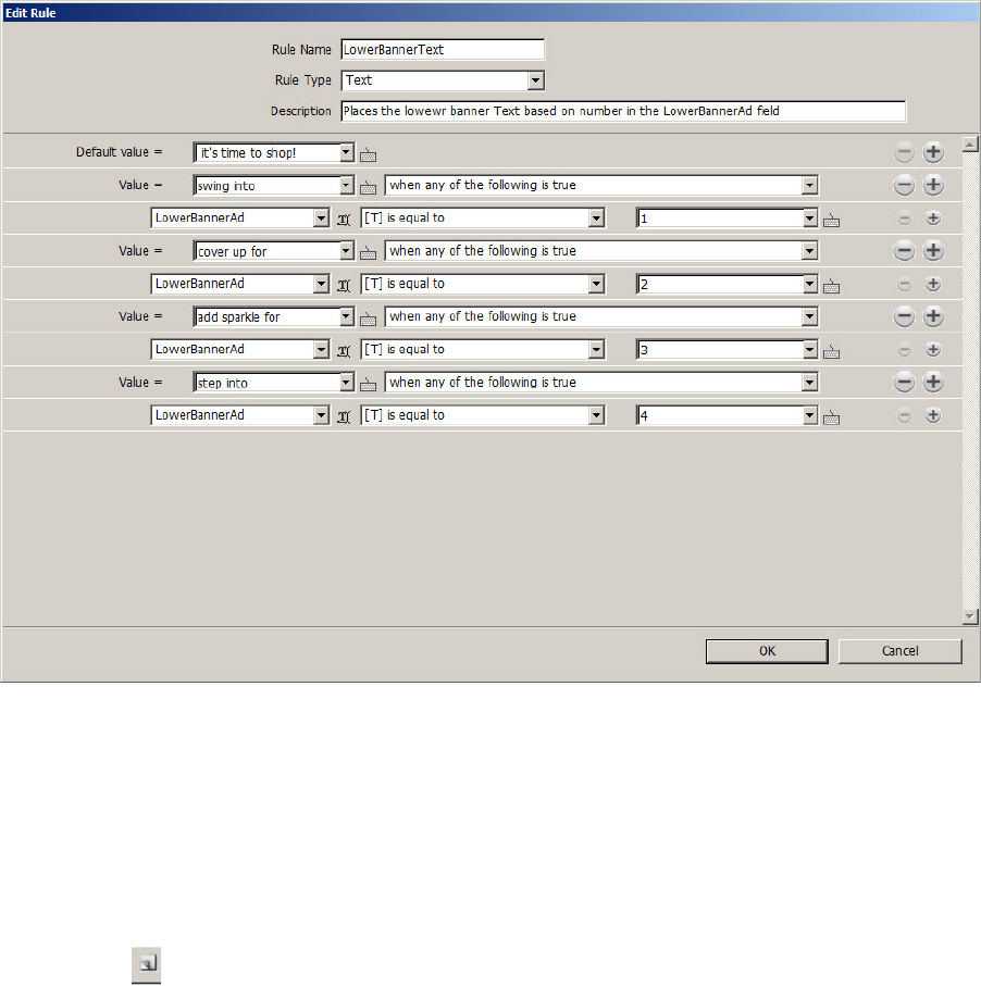 58. With the text frame active, select the rule LowerBannerText and right-click.